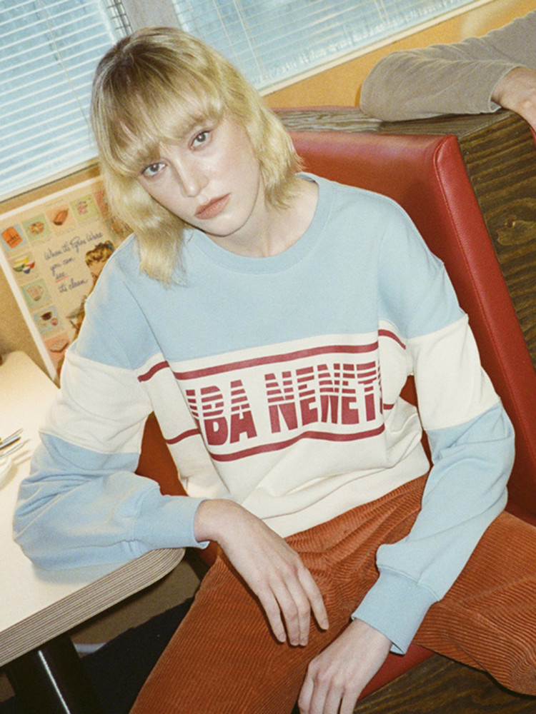 배색과 그래픽의 색감 조화로 레트로한 느낌을 살린 스웻셔츠입니다. SS시즌 베스트 상품이었던 아이 마린 티셔츠의 후속작으로 중간 정도의 두께감의 원단으로 제작 되었습니다. 원단은 품질 좋은 원면을 사용하고 고밀도로 편직하여 세탁 후에도 새 옷 같은 느낌이 오래갑니다. 원단 표면이 깨끗하고 핏감이 좋습니다
