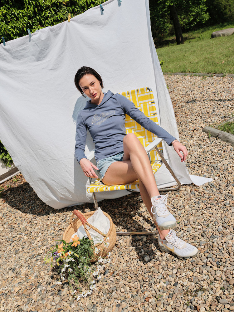 나일론 반바지나 레깅스와도 매치해 활동적인 룩을 연출해보세요.