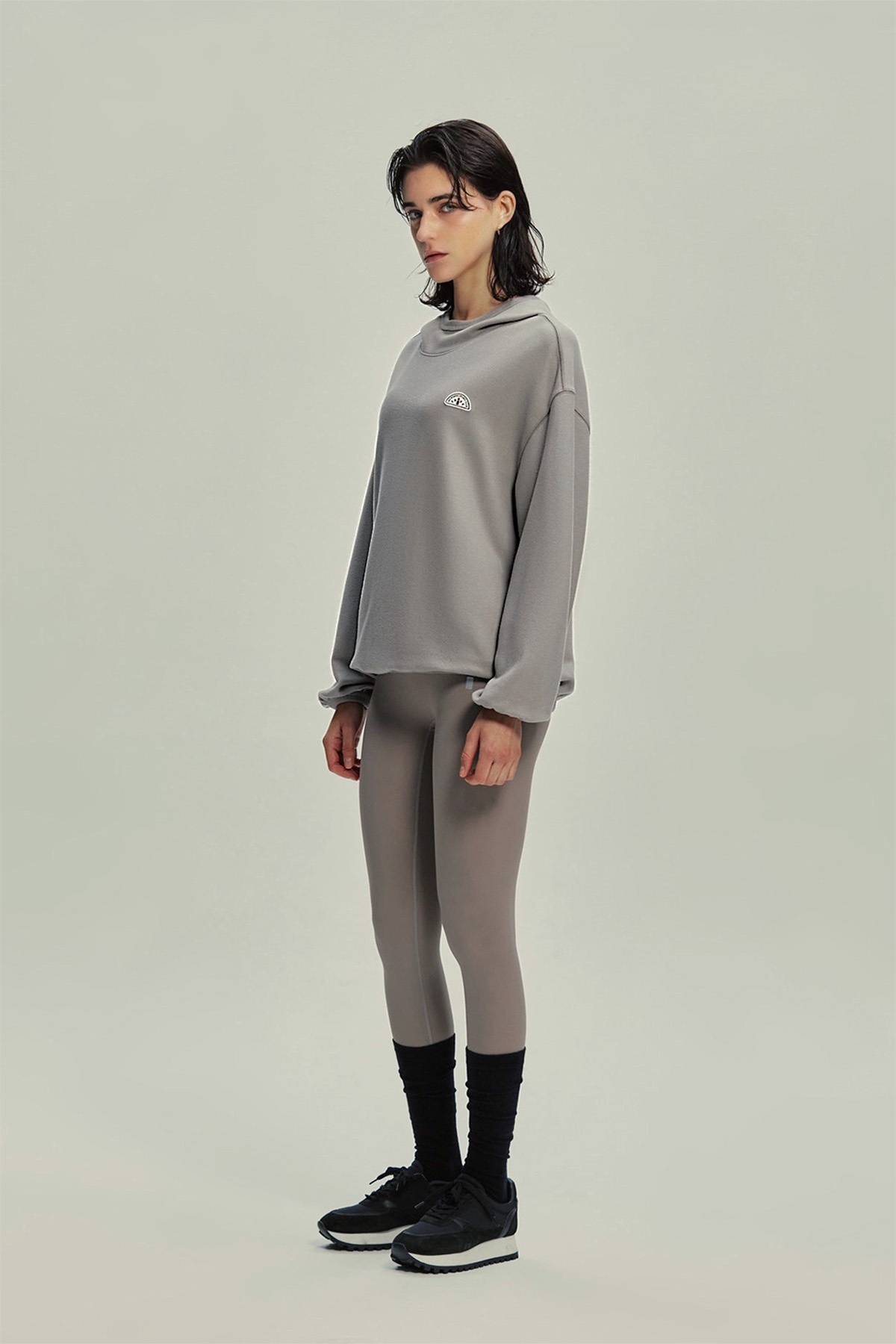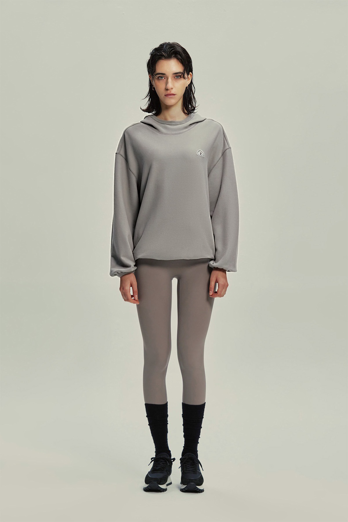 기모제품이지만 두껍지 않고 유연한 소재로 엑티브웨어 위에 편안하게 걸쳐 입기 좋습니다.