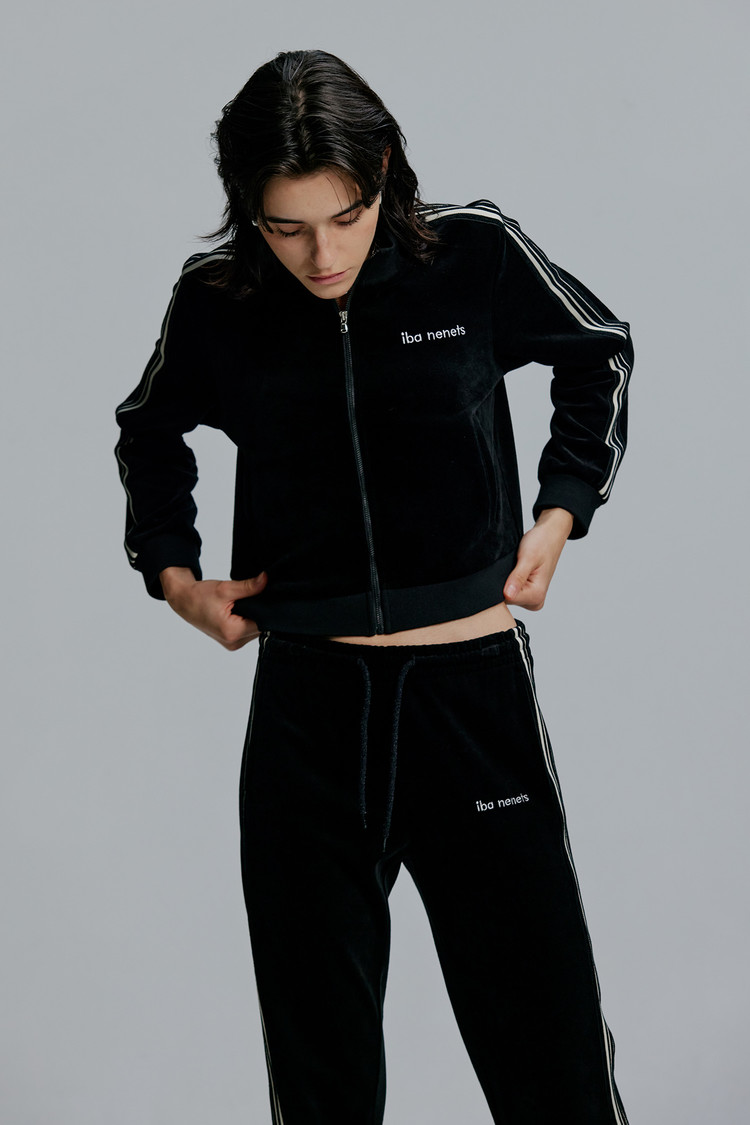 테이프 포인트 벨벳 트랙 자켓 - 블랙