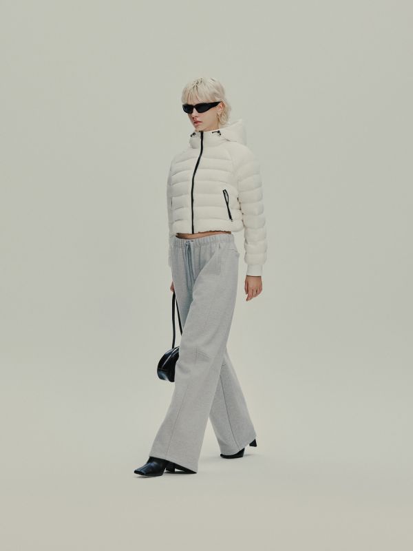 오버사이즈이며 A라인의 패딩 맥 코트입니다. 가슴에 로고 자수가 있으며 스냅으로 여밉니다. 카라와 소매단을 약간 넓게 디자인해 귀여운 느낌을 줍니다. 오프 숄더의 코트이지만 어깨가 많이 넓어 보어지 않도록 어깨 라인을 디자인하였습니다. 오묘한 카키색과 챠콜 두가지 컬러를 준비하였습니다. 스웻셋업 위에 툭 걸쳐 스타일리쉬하게 연출하여 즐겨 보세요.
